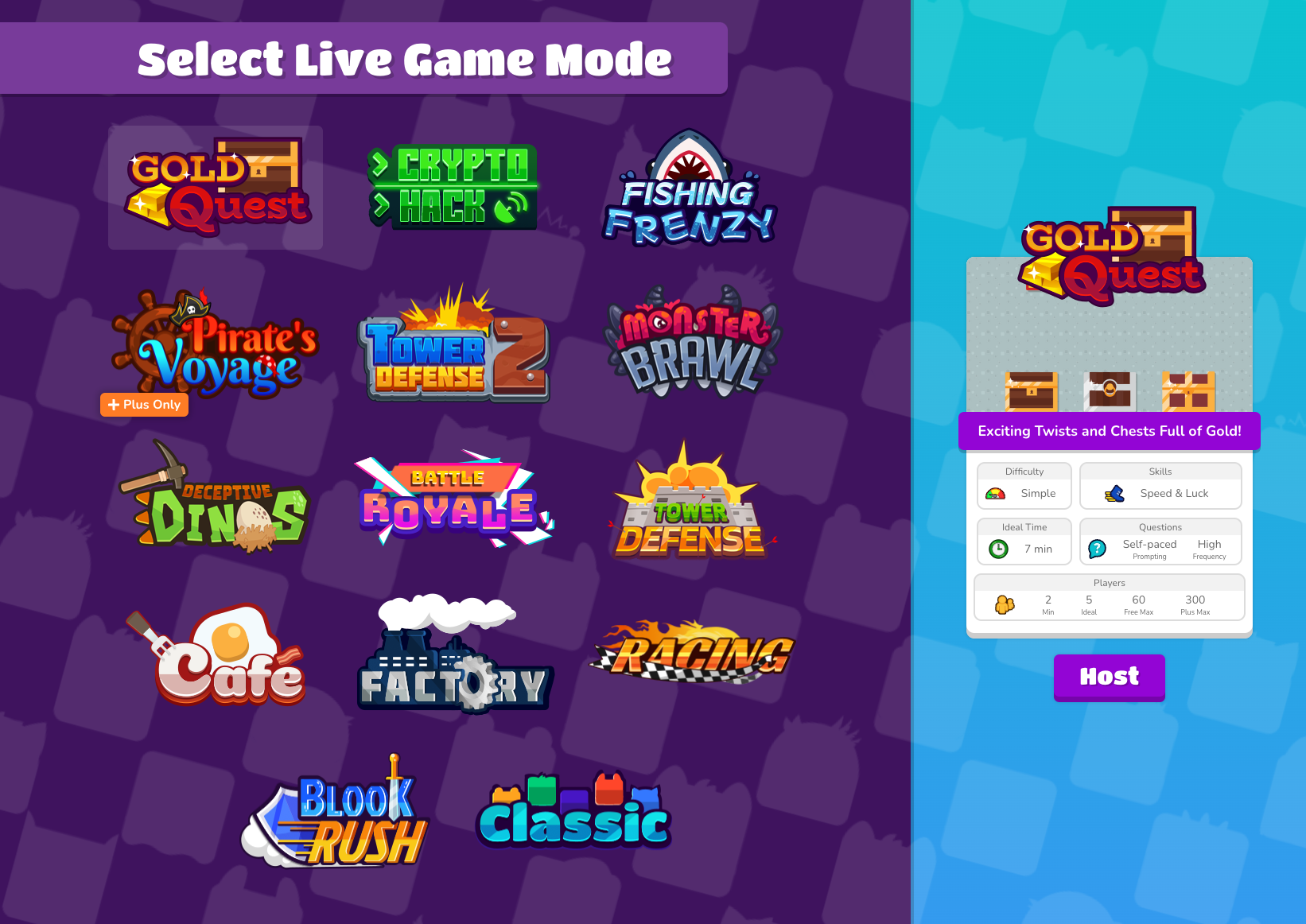 Another favourite which lends itself to the Ipads, or the last 5-10minutes of a lesson is Blooket. Blooket has a number of games built in. Over the past few years, I have found that Gold Quest and Racing are the best for quick games to test vocabulary. Gold Quest turns your most placid Year 7s into money stealing demons who are suddenly keen to answer as many questions on Spanish school vocabulary as possible. Racing involves a race across the screen but with MarioKart-esque power ups. Gold Quest also gets a Christmas edition when the time comes. You can set length of time, amount of questions etc and there are plenty of pre-written quizzes already in there. Students can also make their own logins and it’s very likely someone out there has probably created one on the exam board vocabulary lists.